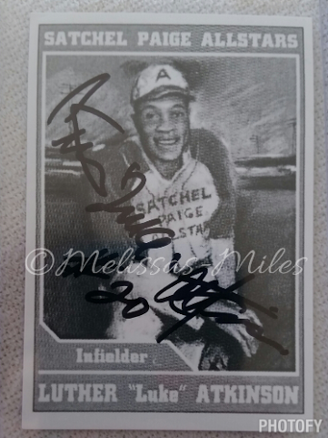 After which the games, how those games always get the foolish… Yes that would be Geraldo. Ha-ha. A few games, throwing baseballs, darts and basketballs along with letting Isabella play that racing water game. And we all know you get the prettiest stuffed animals at the Fair… The keep forever type of stuffed animals; you know the ones that are hidden in the closet. After winning a rainbow monkey, seahorses and given a banana for good sportsmanship I told Geraldo we begin on our way to the next areas catching up with Dad, Heather and the girls. Where we were informed about a building with many neat venders, as they ate we headed toward the building. I’m so grateful for this as a history buff, though I know I don’t know everything it is my favorite subject. While we were inside we had the great opportunity to meet Luke, Luther Atkinson of Negro Baseball League and get his autograph and photo. (Sadly Geraldo blinked during the photo).