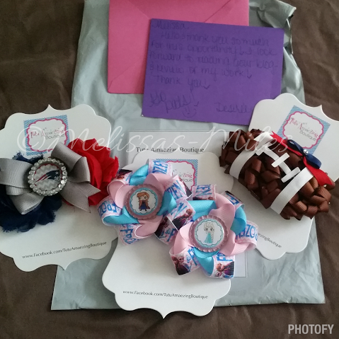 I cannot express how much fashion means to my daughter and I; though I do slack these days as a mom of two girls they take all my time to get ready. I do take my time for work, hair done and of course makeup and make sure my nails look nice; if anyone is like me they are looking at the waitresses hand when serving food. Back to the point though, I found this amazing shop online, TuTu Amaezing Boutique and couldn’t believe all the breath taking bows that this wonderful woman (Desiree) could create. I myself have tried a few times now to make Isabella along with Elleanna and my sisters (Careena and Hailee) bows… But they are basic bows, nothing special now these bows on the other hand took special talent!