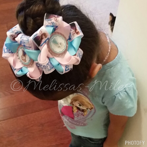 And of course Frozen, Isabella had a few chances to wear her Frozen bows to school along with Frozen live. Her grandfather and Meme took her along with Careena and Hailee this past week to the show. Isabella’s heart melted, her eyes widened and she said “Mommy you buy me?” when she saw the bows come out of the package. What better treat for Princesses such as my girls then a fashion statements that show so much personality and beauty.