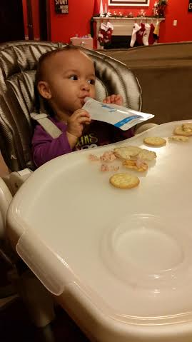 The spills, puddles and wonders of what is now laying on the floor… The highchair and maybe even in her hair I find myself questioning if there was an easier way for my girls to have their favorite healthy snacks. After researching around the internet a bit I found Ezsqueezees pouches and I think just in time…