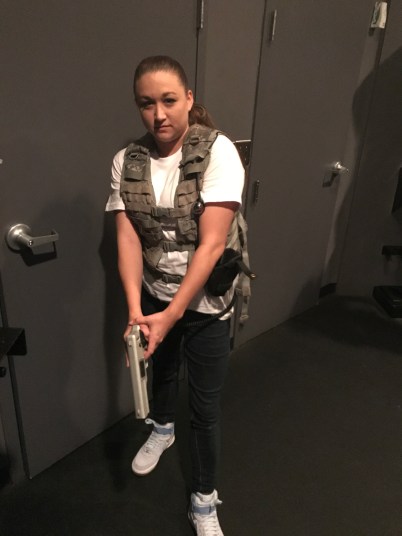 After a short break for food downstairs of Pointe Orlando we were back at Hard Knocks, this time opening the doors to a full house! Excitement ran through me, I was ready to go. Packing the locker full of our items we set out to listen to the rules and be split into teams. This time we were together as a group… Well that would help to a certain extent. Because I knew the three out of seven members on the team which will later get me “killed”. After a few rounds with a large family, that had us cracking up and finally had me feeling as if I wasn’t the only confused solider!