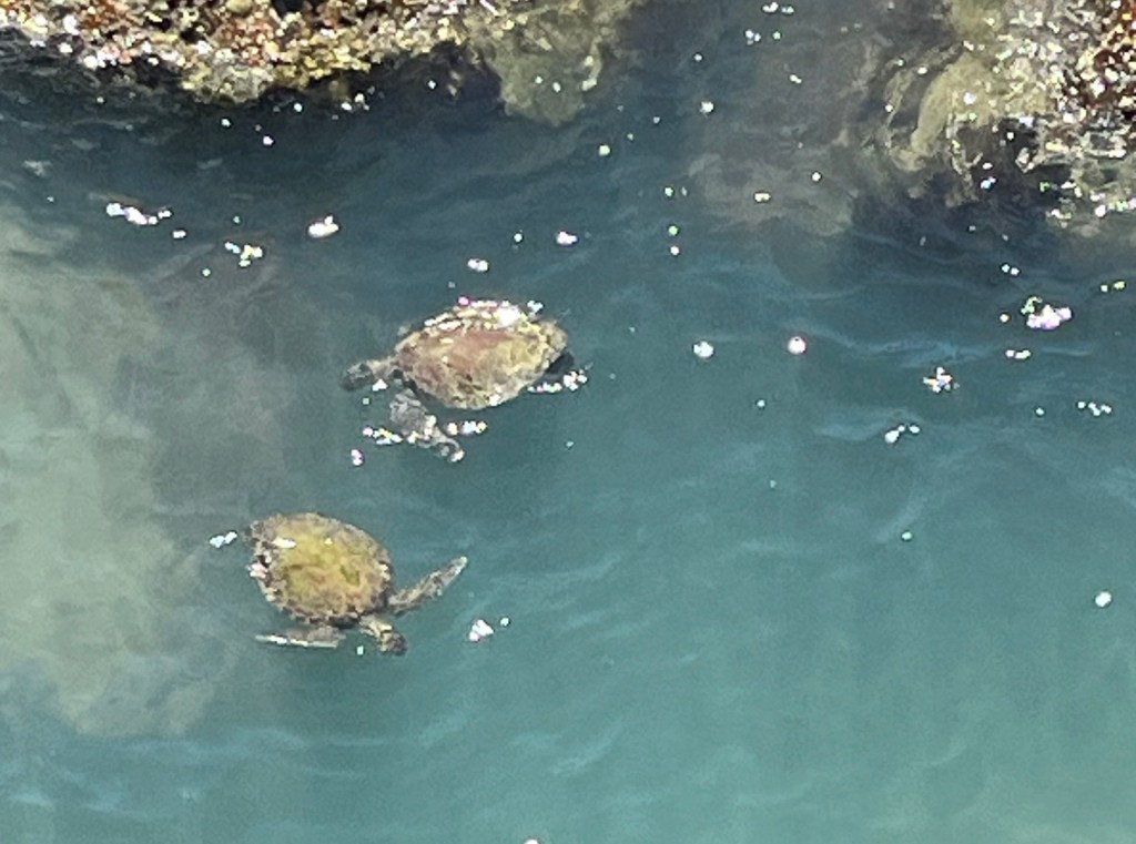 Before heading to the beach, somehow, with my bad eyesight, I spotted a tortoise! And if you all didn’t know they hiss! As we walked to get a closer view, we heard that hissing sound. My first reaction was “did it just hiss at us” as I broke into laughter; my aunt, as well, laughing answering back “yes!”. We may have “cautiously” pet its shell, of course, away from its head. Come to think about it when you watch those Tik Toks about women wanting to pet dangerous animals, I now realize I am one of those women. It may just be a “smaller” tortoise, but maybe we scared him or maybe he was not up for sharing the lovely shrubs it was munching on. Either way, we still have all our fingers and I’d like to say, MY AUNT PET IT FIRST! Which, in my opinion, gave me the green light to pet it as well hehe.